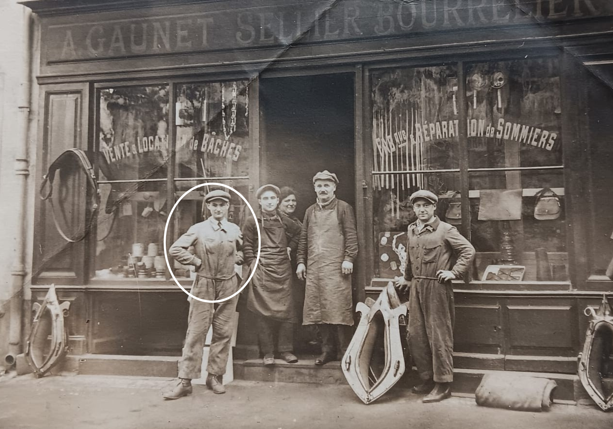 Né en 1909, Albert Gauthier se forme d’abord au métier exigeant de sellier-bourrelier à Chalon-sur-Saône, où il apprend la précision du geste, la tension juste et le respect de la matière.